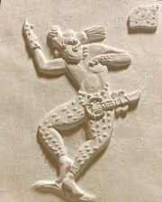 New work in progress, large disc with Maya Ball Player available in August a ready, to paint blank